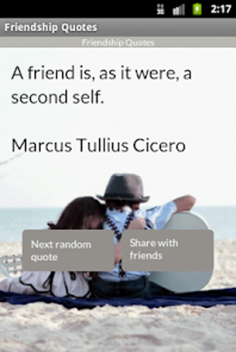 SolarStellar에서 개발한 Friendship Quotes는 유명 인물들이 말한 친구에 관한 영감을 주는 명언과 속담들의 거대한 컬렉션을 제공하는 안드로이드 앱입니다. 이 앱은 고대비 색상으로 쉽게 야외에서 사용할 수 있으며 오프라인으로 작동하여 WiFi나 무선 인터넷 연결이 필요하지 않습니다. 사용자는 Facebook, Twitter, SMS, 이메일 및 모든 소셜 앱을 통해 쉽게 좋아하는 명언을 공유할 수 있습니다. 그리고 가장 좋은 점은 완전히 무료입니다!